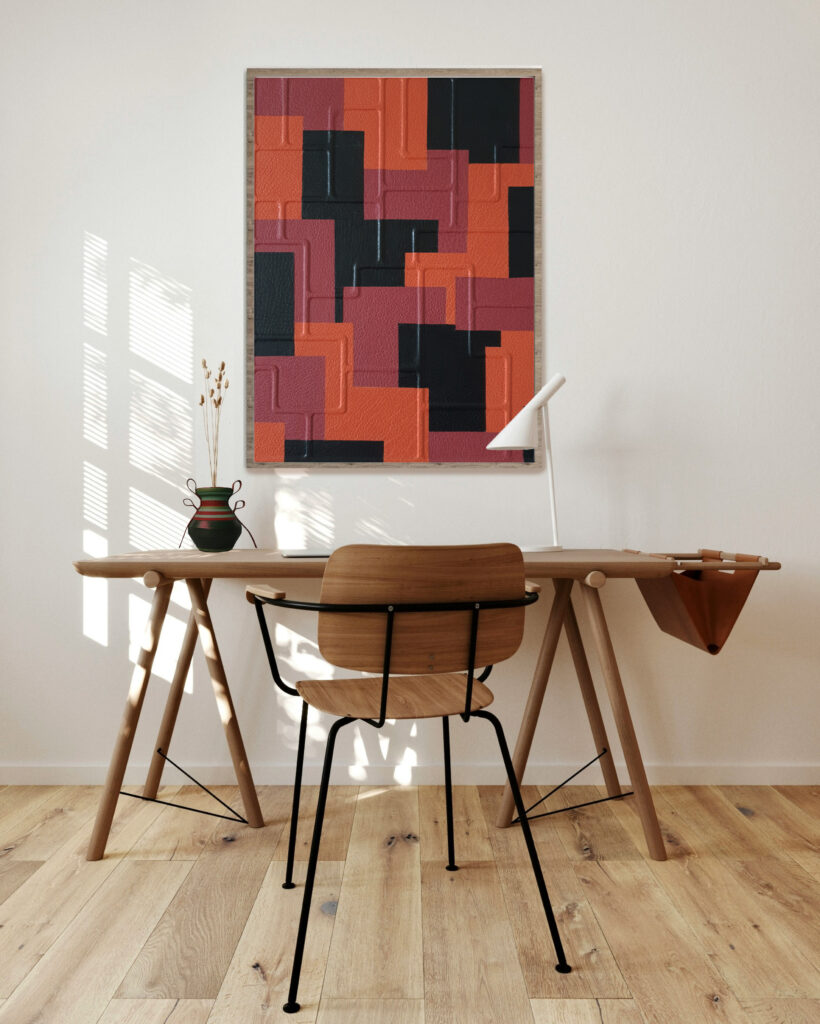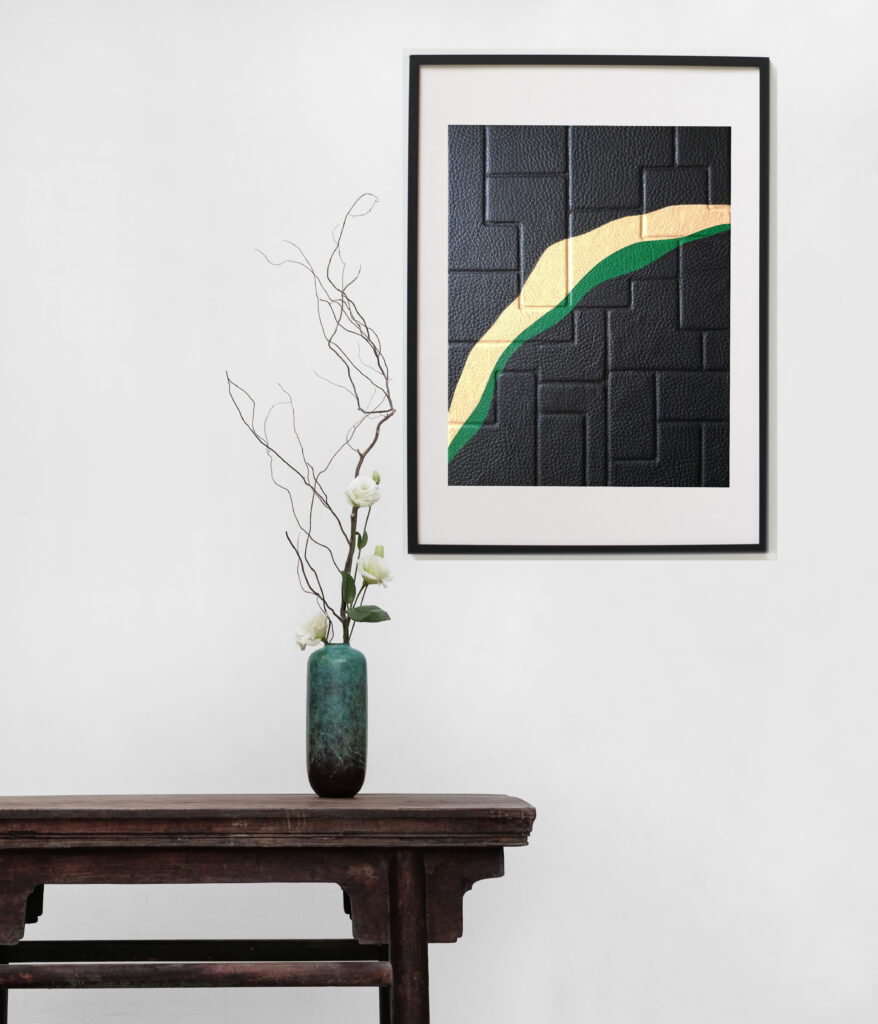 Very happy to share with you our first wall art in relief « Gweledva », covered with leather in green gradient. The result pleases us a lot, we hope not to be the only ones.